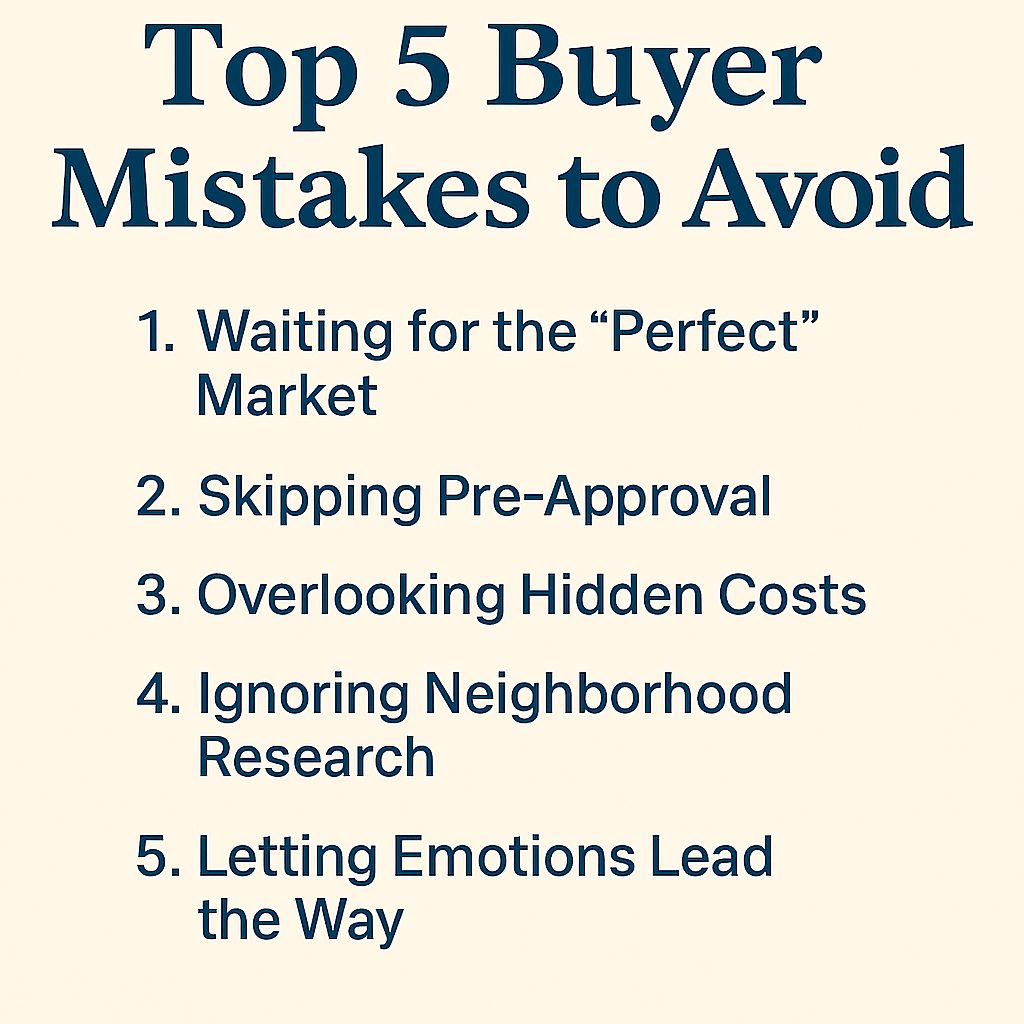 Buying a home in 2025 is exciting—but let’s be honest, it’s also a bit overwhelming. Between fluctuating interest rates, tight inventory, and new tech tools, today’s buyers have a lot to navigate. Whether you’re a first-time buyer or a seasoned homeowner looking to upgrade, avoiding these common mistakes can save you time, money, and stress.